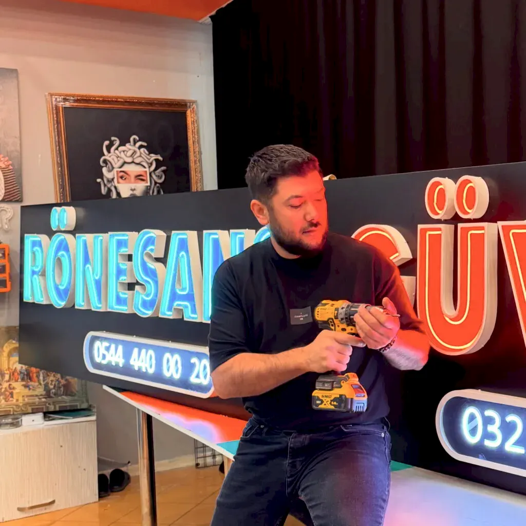 Azerbaycan'da neon tabelalar uzun ömürlü ve estetik görünüm için özenle üretilir, profesyonel montaj ve kaliteli malzeme kullanımıyla fark yaratırız, işçilik detaylarına özen gösteririz.